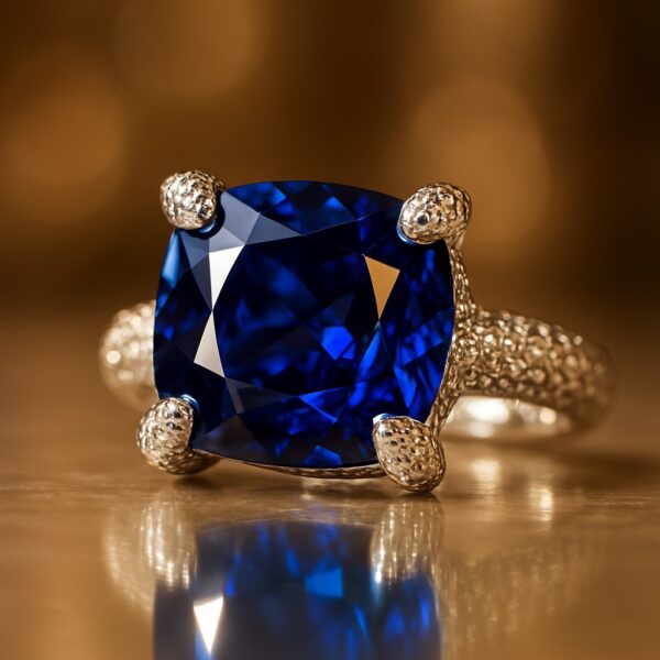 The “Sapphire Ode” features an exquisite sapphire as its centerpiece, crafted with multi-faceted precision to embody the purest and most profound blue—evoking the deep and tranquil hues of the twilight sky. The ring’s band is adorned with pavé-set diamonds, reminiscent of a cluster of stars embracing and highlighting the nobility and calmness of the central stone.